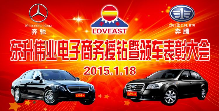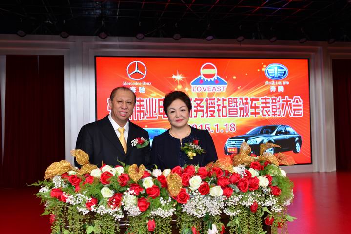 上午八点半,东升伟业电子商务有限公司授钻暨颁车表彰大会,在集团公司商学院辉煌的培训中心大厅盛大启幕,集团公司总经理谢蕙竹女士亲自主持,常务副总于城宣读获奖者名单,大会隆重表彰了电子商城市场36位一钻金章、21名二钻金章、7位三钻金章获得者,并为12名获得奔腾轿车大奖的四钻董事现场颁车;当豪华奔驰轿车得主诚信系统创始人高庆亚先生、王敏副总和聚豪国际系统创始人张咏纯、刘禹杰伉俪分别走向领奖台时,星光灿烂的会务大厅凯歌高凑、掌声雷动;选择大于努力,付出总有回报,15位轿车得主,在公司企划部经理王志博先生充满磁性和激情的一一介绍下,很多人满含热泪,接近半年的市场拼搏,在有些人不理解的目光中,他们坚定不移、勇往直前!在电子商务、直销运营、异业联盟立体化运作中,他们首开先河、大胆尝试!终于赢得尊严、获得财富。