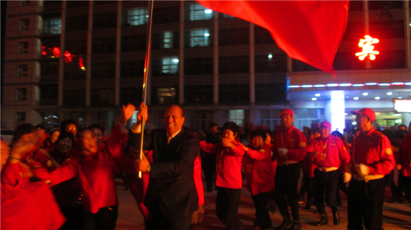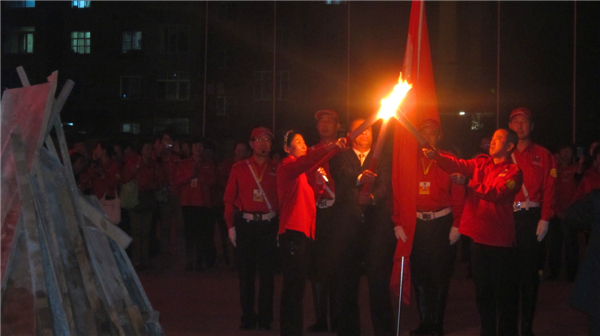 28日晚8点半,篝火晚会上,于爱东董事长亲自点燃华星火炬,由李岩松老师传递给华星钻石级领导人,场上顿时鞭炮齐鸣,篝火、焰火,星星之火迅速燎原。董事长于爱东先生喜握华星系统火红的旗帜带头舞起,众人汇聚成一条巨龙,环绕广场,伴着腾空的礼花和高昂的赞歌欢呼雀跃、气吞山河!夜空华星璀璨,大地龙飞凤舞,一派东升新气象。