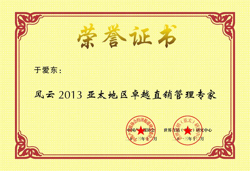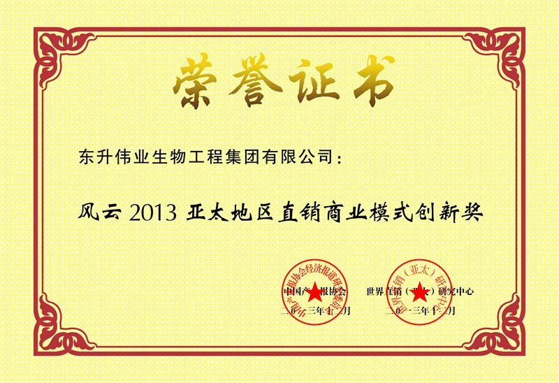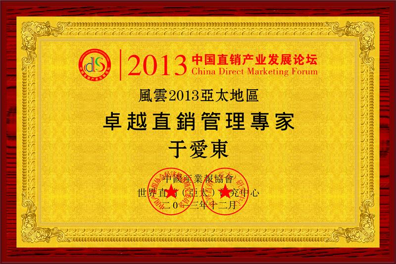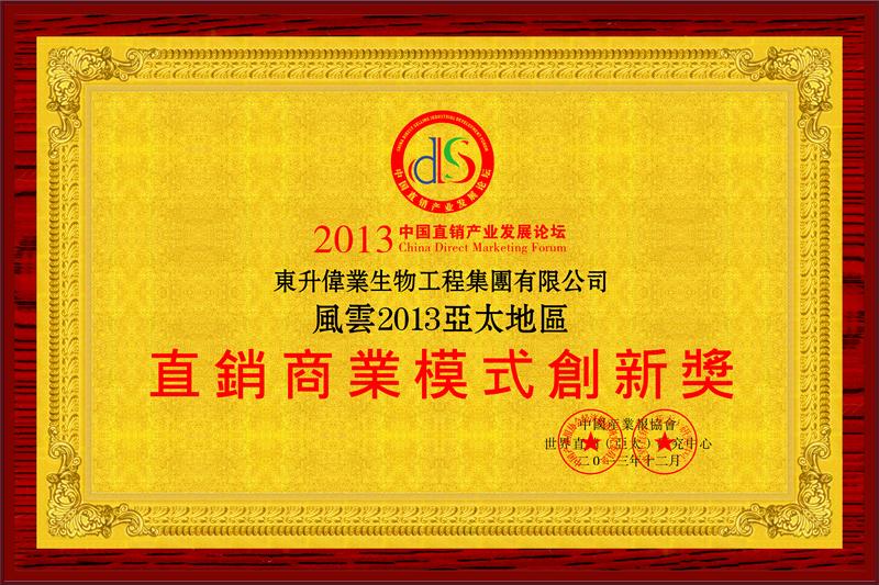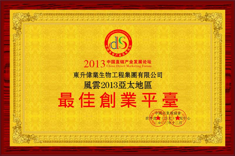 热烈祝贺东升伟业获得2013亚太地区最佳创业平台、直销商业模式创新奖;董事长于爱东先生获得2013亚太地区卓越直销管理专家等殊荣。