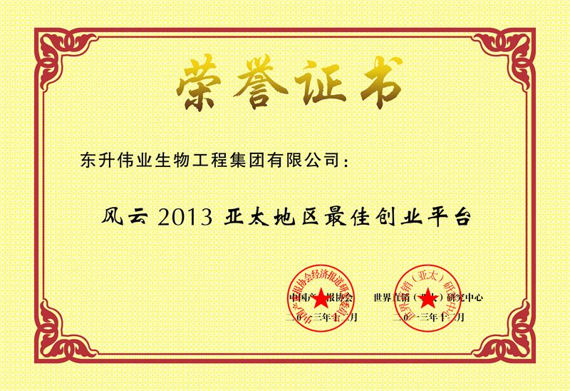热烈祝贺东升伟业获得2013亚太地区最佳创业平台等荣誉。