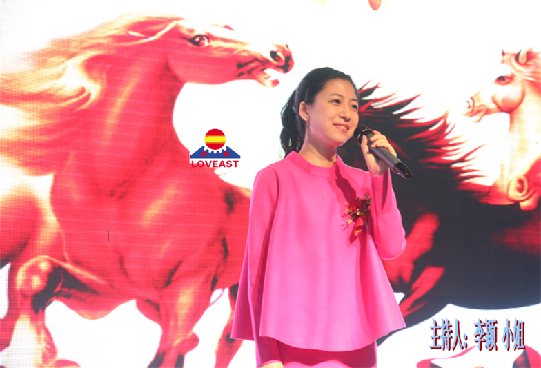 会场井然有序,掌声雷动,上千东升家人见证这一历史时刻,大家结合自己的梦想和目标,对于中国梦、中国传统文化有了更进一步的了解和认识。《中国梦》歌曲的词作者和主唱人毕海容女士亲临现场领唱“中国梦”,马年中国梦首唱仪式在震撼的夏威夷演播大厅进行,台上台下互动,1000多名华星将士同唱《中国梦》,将大会推向高潮!激动人心的中国梦之歌,优美而雄壮的旋律在星光灿烂的夏威夷大厅久久回绕,汇聚成一种声音---“愿东升愈加辉煌;愿华星更加璀璨”!会后,李建忠编导赠送给公司和华星系统“一马当先、驷马难追、万马奔腾、马到成功”等名人书法横幅,真诚祝福东升、华星马年马不停蹄、马到成功!