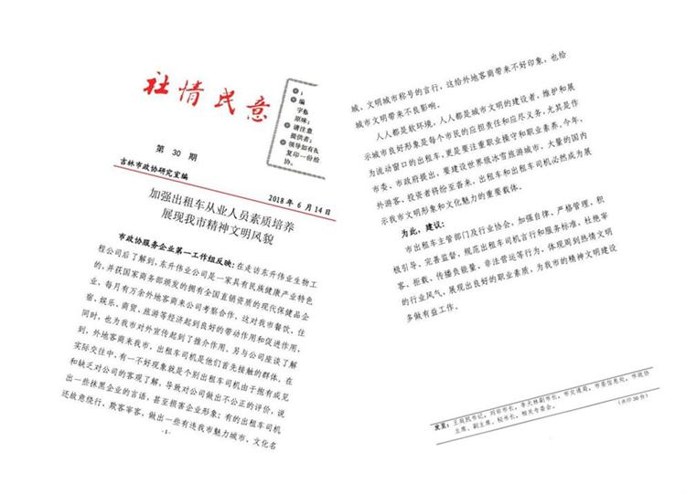 2018年6月14日,吉林市政协研究室“社情民意”专栏第30期刊发以下消息,并发市主要领导及相关部门。