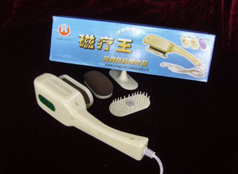 “磁疗王” — (强磁强振理疗器)是根据中华传统推拿按摩术经络学、热疗、磁疗技术,并融合当代最新科技成果研制而成的。它通过强有力的按摩及按摩时所产生的变化磁场对人体的血液、体液产生微观搅拌作用并发出热量,从而大大降低了血液、体液的粘度,起到活血化瘀的作用,同时磁场及对穴位的按摩具有良好的通经、活络、镇痛的效果。